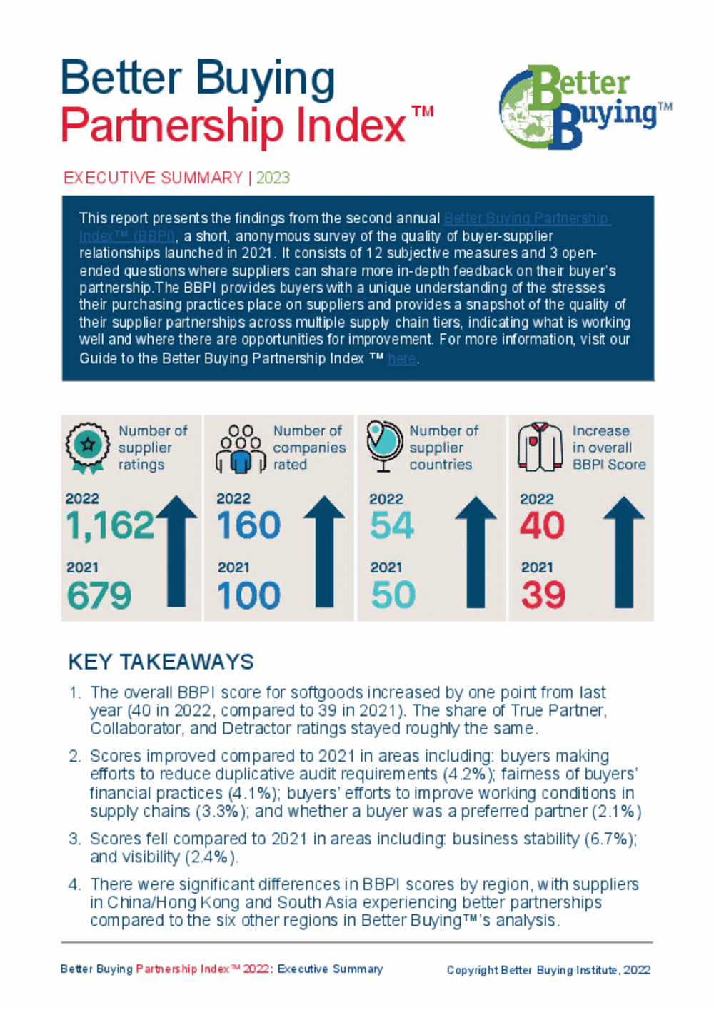 Download Better Buying Partnership IndexTM 2023 Executive Summary by Better Buying Institute created 2023-02-09T21:39:12+07:00 Highlights, key takeaways and recommendations for buyers, from the Better Buying Partnership IndexTM 2023 Report.